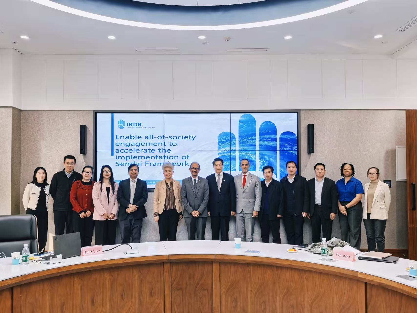 Attendees of the high-level roundtable meeting organised by the IRDR IPO, which coincided with the mission to China by the SRSG for DRR, Mr. Kamal Kishore.