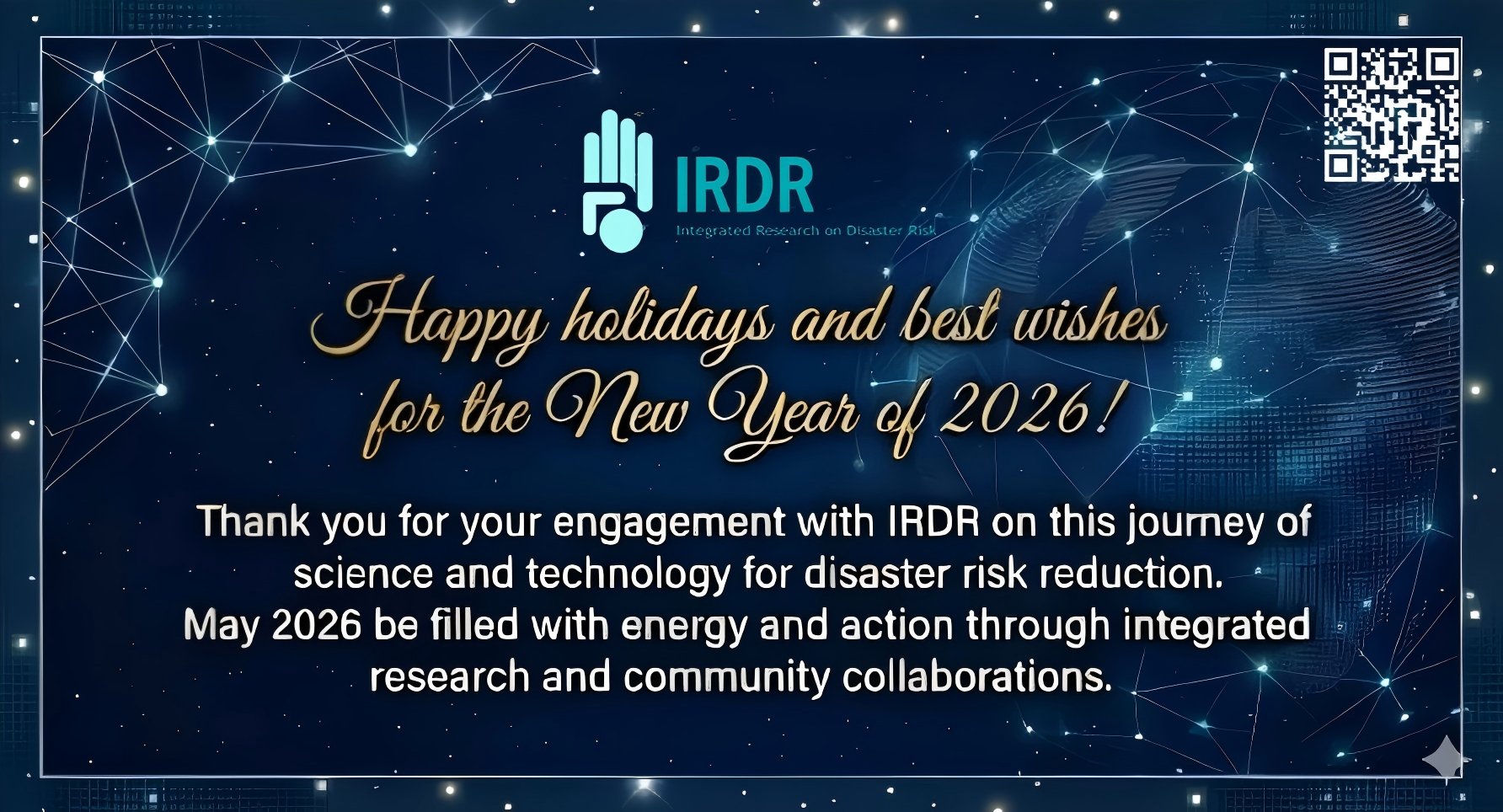 On behalf of IRDR, we wish you and your various networks all the best for the season, and we look forward to your continued engagement with the IRDR community in the new year.