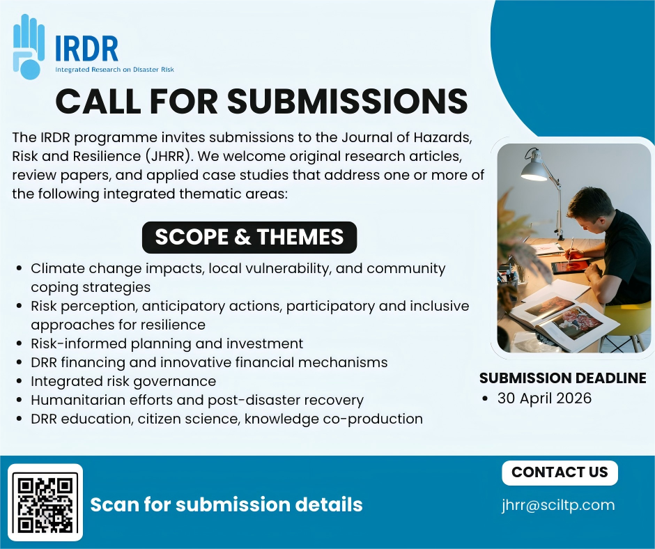 IRDR together with APSTAAG are conducting a survey to track the progress of the Asia and Pacific regional implementation of the Sendai Framework Science Technology Roadmap from a wide range of stakeholders. The analyses of the survey will be presented at the 2020 Asia Pacific Science and Technology Conference for Disaster Risk Reduction (ASTCDRR) on 16-17 March 2020, in Kuala Lumpur, Malaysia. It would be much appreciated if you can participate in survey, and disseminate the survey link to more stakeholders. The deadline for submitting this survey is November 15, 2019.