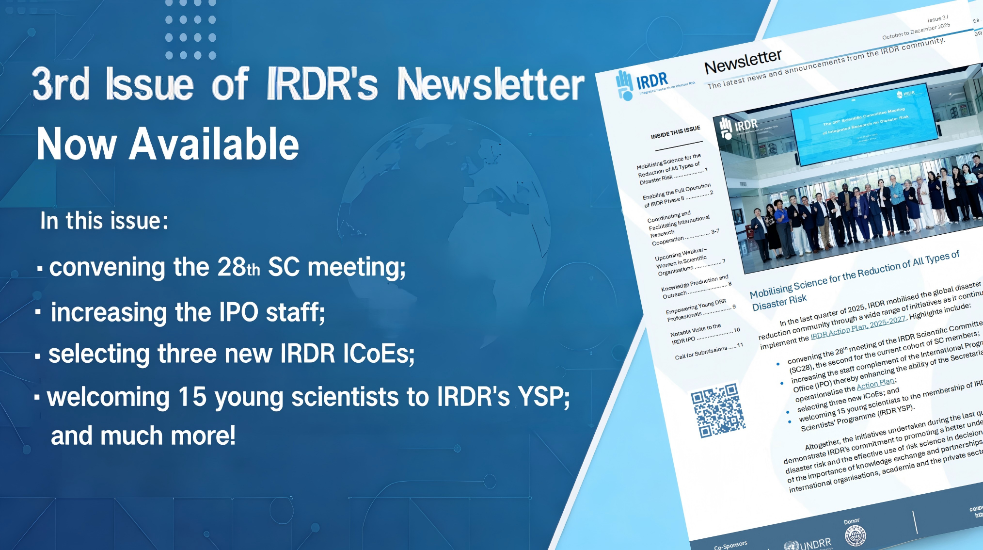 The Scientific Committee provides scientific guidance for IRDR to deliver on its mission to mobilize science for the reduction of all types of disaster risk, building resilience and reducing vulnerability by integrating risk science with climate change adaptation and mitigation and sustainable development.